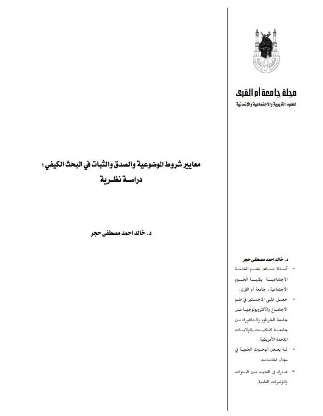 دراسة علمية : معايير شروط الموضوعية والصدق والثبات في البحث الكيفي.